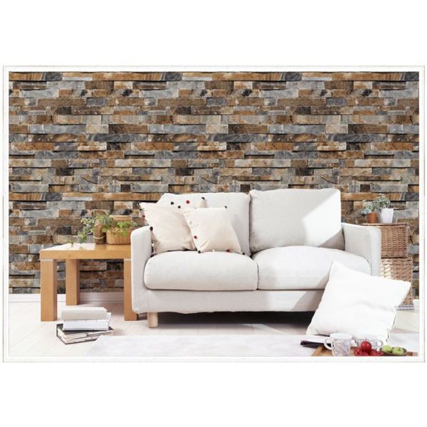 Living Room Wallpaper Realistic Brick Rock Wall Sticker Pvc Multicolor