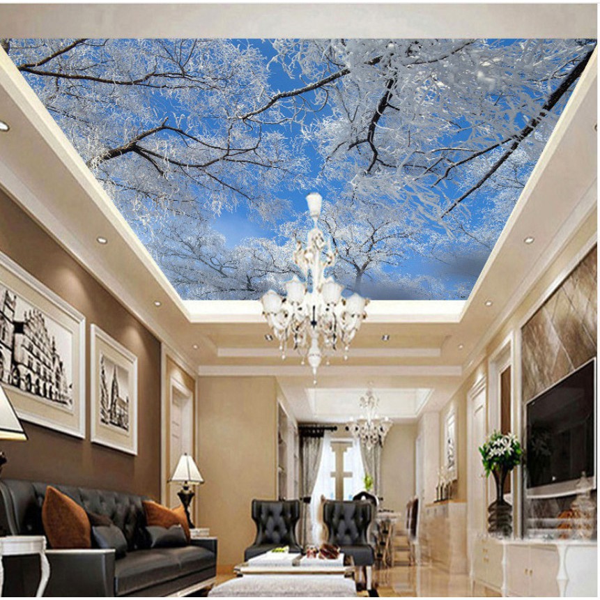 Winter Sky Ice Snow Tree Background Living Room Ceiling Mural Wallpaper