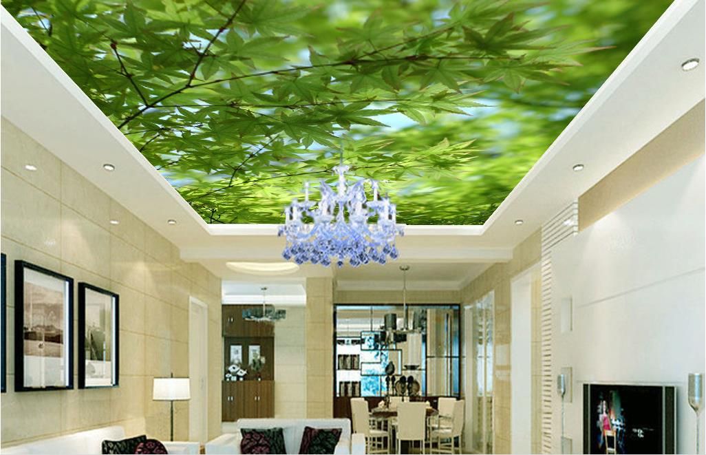 Creative Wallpaper Blue Sky 3d Ceiling Wall Sticker Living Room Roof Bedroom Wallpaper Green Pvc Sel