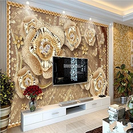 Amazon Com Junzybh Mural Golden Luxury Beautiful Flower